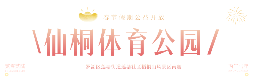 预约方式:每日21:00开放预约(提前1天预约),通过“罗湖文体通”或“i深圳”体育场馆一键预约平台搜索。【仙桐体育公园】线上预约,公益开放时段不接受线下预订,场地有限,约完即止。2月20日(初四)至2月23日(初七)营业时间:10:00-18:00 ,营业期间正常收费。